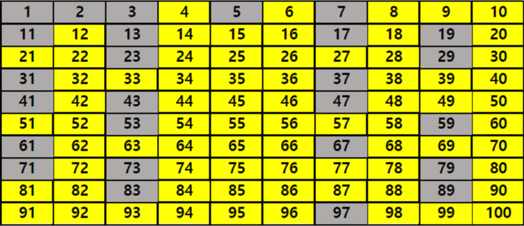 [예시] 1 ~ 100 의 숫자 중 소수 찾기